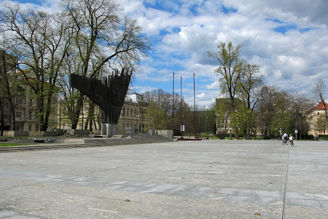 Opis: Abstraktna, 11 metrov visoka bronasta plastika s shematičnimi človeškimi postavami, postavljena na tlakovani ploščadi z vodnim zrcalom in dodanimi napisi, še danes sodi med največje javne plastike v državi. Kip v likovnem pogledu simbolizira maso v gibanju. Kipar je z delom začel leta 1964, pri izdelavi pa mu je pomagalo še kakih deset sodelavcev, med njimi tudi kiparjev brat, akademski kipar Dušan Tršar. V bron je bil odlit v Zagrebu v 170 kosih, ki so jih zvarili v štiri večje kose in pripeljali v Ljubljano. Spomenik ima 19 ton in je sestavljen iz geometričnih ploskev, vertikal in trikotnikov. Kiparska kompozicija po kiparjevih besedah predstavlja sklop zbiranja, borbe in revolucionarne zmage.
