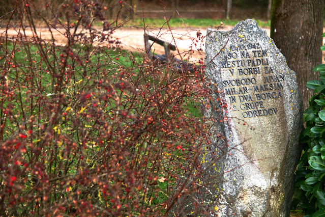 napisom, posvečenim na tem mestu padlim Milanu Juvanu - Maksimu in borcema